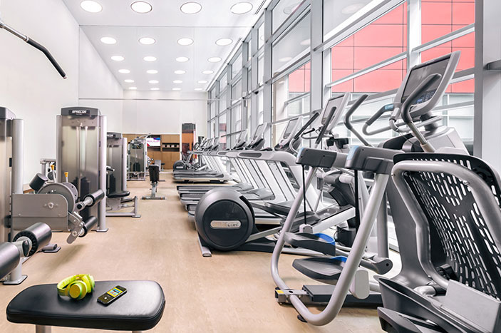 通过锻炼保持健康体魄!我们的健身房配备各种先进的电子健身器材,辅助您的运动计划。